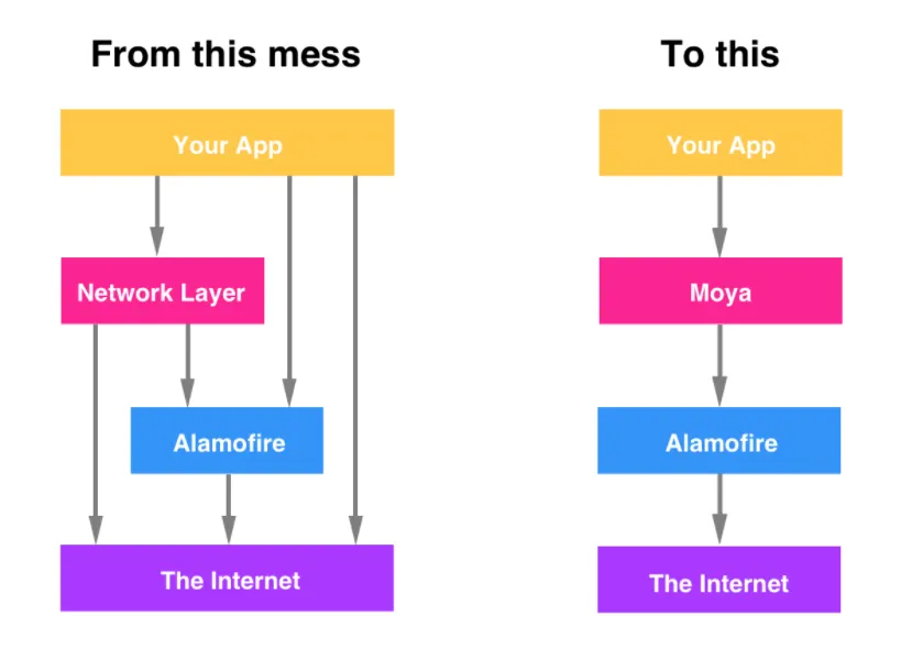 Moya는 Alamofire를 사용하면서 네트워크 계층을 구조화하는 다른 접근방법을 제공하는 라이브러리입니다.