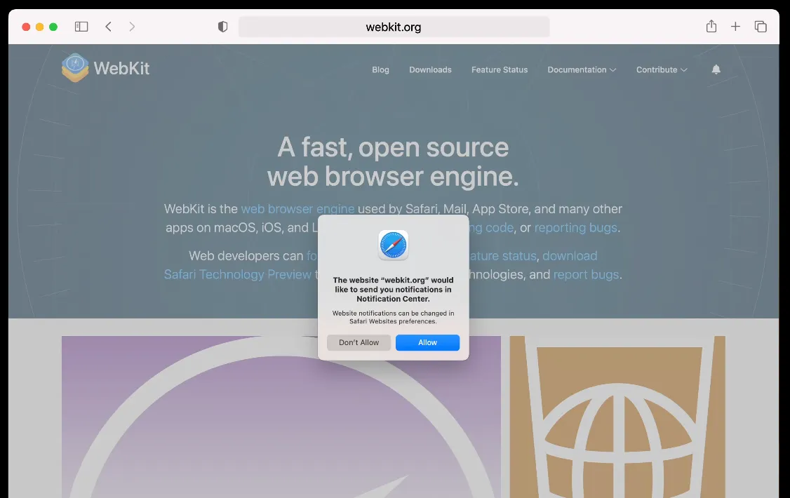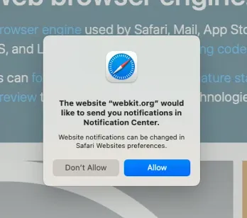 webkit.org는 종 모양을 눌러 허가를 요청합니다. 이는 사용자 제스처 요구 사항을 충족시킵니다.