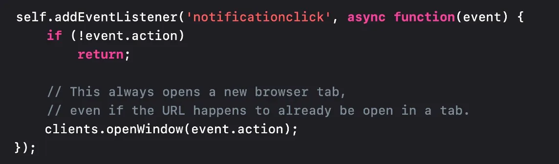 예를 들어, 새 창을 열 때 해당 알림과 관련된 URL로 이동하는 거