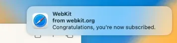 웹 푸시 알림은 다른 알림과 똑같이 표시되고 webkit.org가 보낸 것으로 여겨집니다.