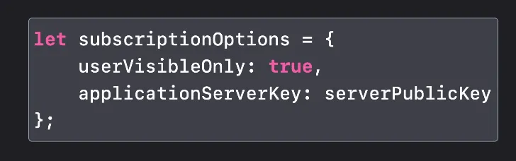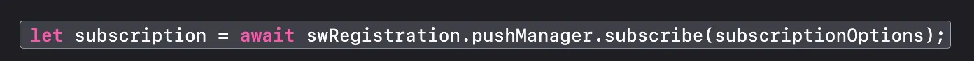 하지만 사용자가 권한을 부여했다고 하면 PushSubscription 객체를 JavaScript가 반환합니다.