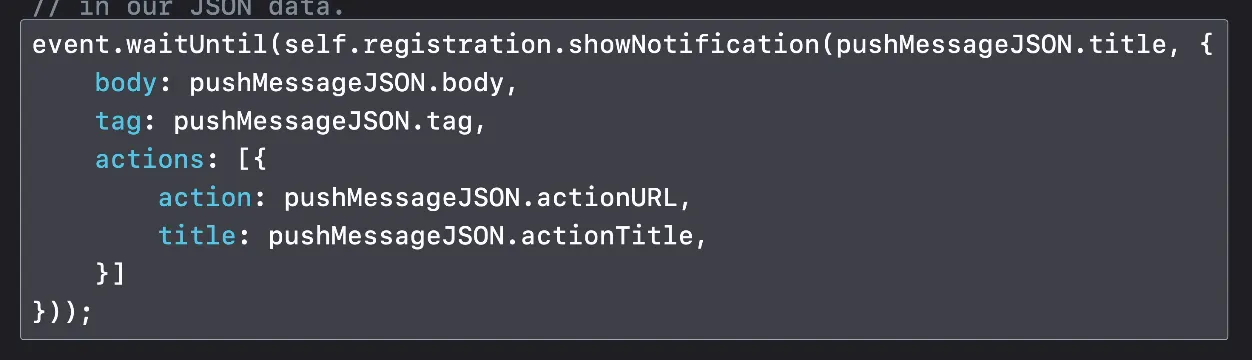 브라우저에 있는 사용자에게 서버에서 보내는 푸시 메시지에 필요한 모든 항목이 포함되어 있어요.