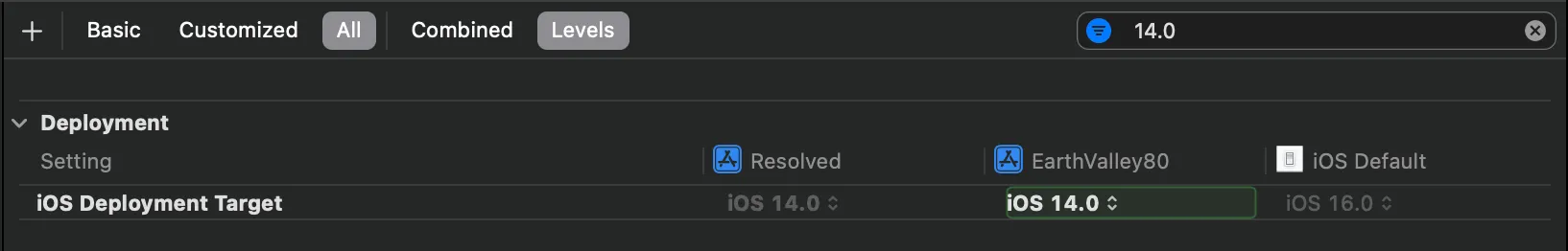 그리고 iOS Deployment Target를 iOS 14.0으로 변경했습니다.