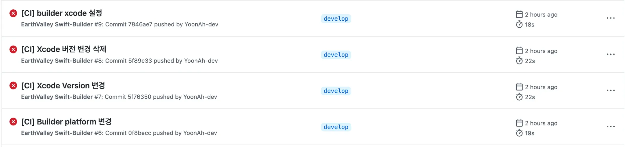 계속 빌드 환경에서의 Xcode 버전도 바꿔보고 기기도 바꿔보고 OS 환경도 변경해봤습니다.