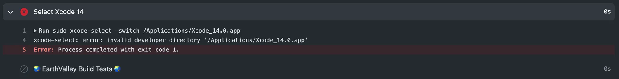 빌드 메시지에 따르면 Xcode_13.2.1.app 으로 빌드를 돌리는 거 같아서 Xcode_14.0.app 에서 돌아갈 수 있도록 수정해줬는데…