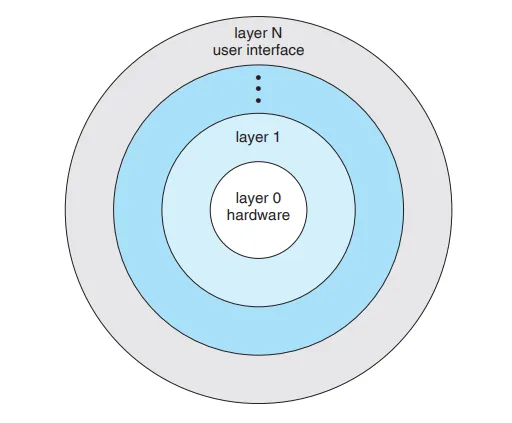 각 층은 하위층 연산을 호출할 수 있으며, 해당 연산이 어떻게 구현되는지 알 필요가 없습니다. 구현과 디버깅이 간단해지게 되는거죠. 하지만, 사용자 프로그램이 여러 계층을 통과해야 하기에 오버헤드가 발생할 수 있습니다.