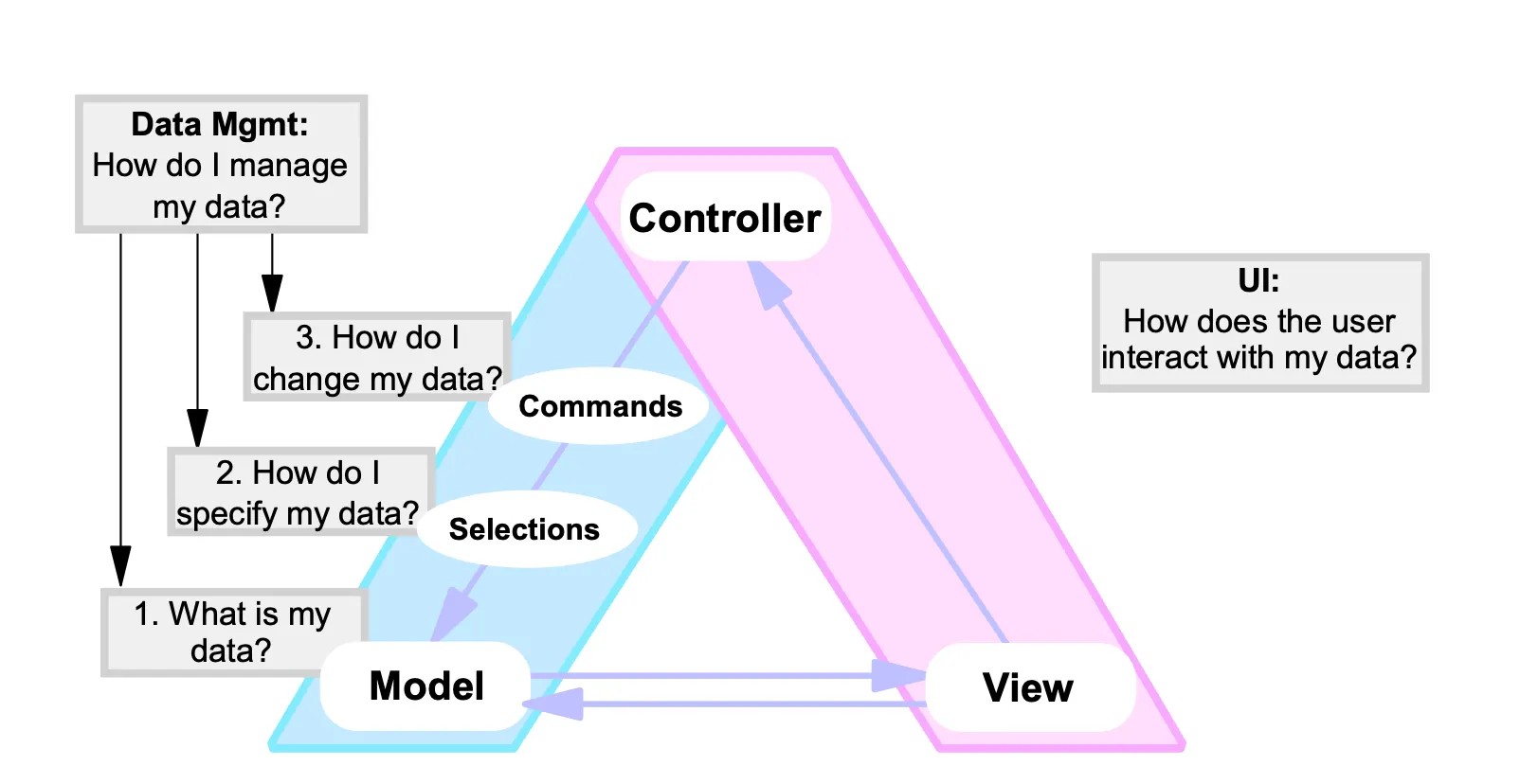 해당 논문에서는 데이터 관리를 세분화하여 Model/Selection/Command로 분리합니다.