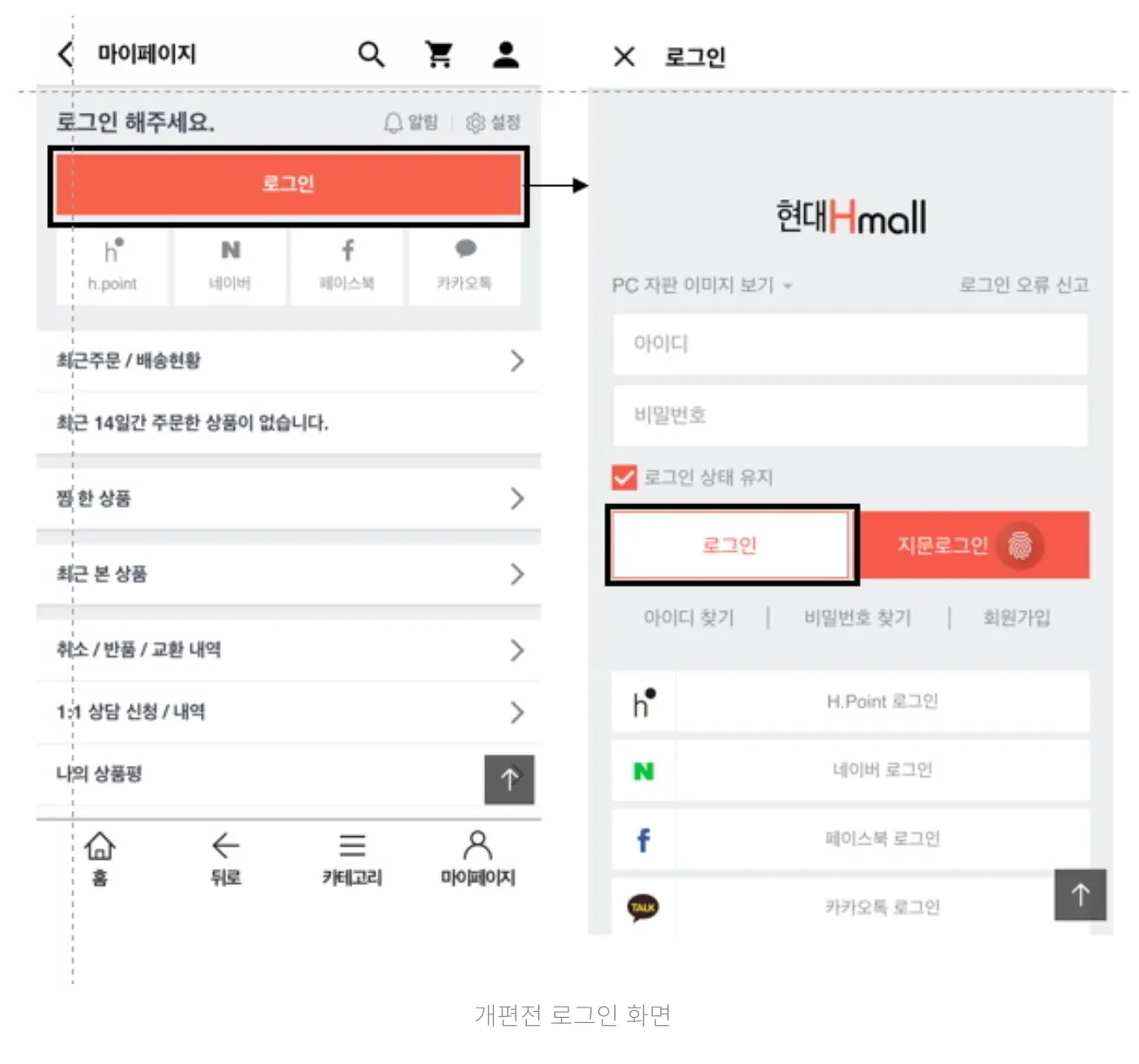 (์ค๋ฅธ์ชฝ ์ฌ์ง) ๋ก๊ทธ์ธ ๋ฒํผ์ด ๋ค๋ฅธ ๋ฒํผ์ ๋นํด ๊ฐ์กฐ๋์ด์ผ ํจ์๋ ๋ถ๊ตฌํ๊ณ ์คํ๋ ค ์ง๋ฌธ๋ก๊ทธ์ธ ๋ฒํผ์ด ๋ ๊ฐ์กฐ๋์ด ์ดํผ๋์ค ํจ๊ณผ๋ฅผ ์๋ชป ์ฌ์ฉํจ