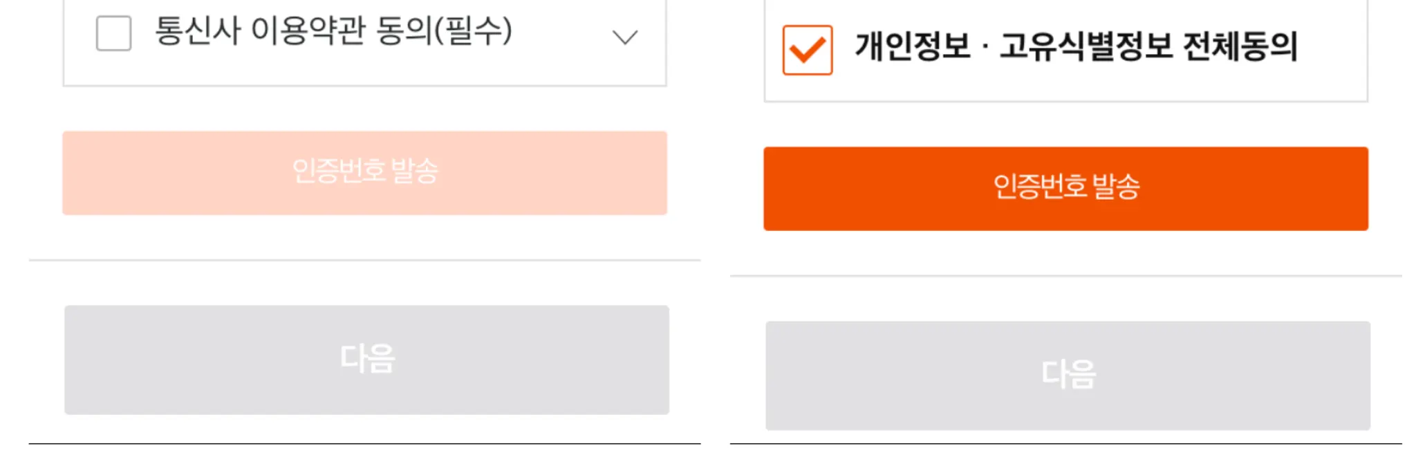 ๋ ฅํ์ง ์์์ ๋ โ์ธ์ฆ๋ฒํธ ๋ฐ์ก' ๋ฒํผ์ด ๋นํ์ฑํ ์ํ๋ก ๋ณด์ด๊ณ ์์คํ