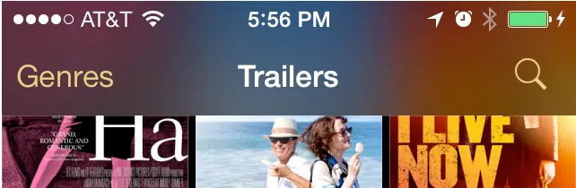 상태 바의 배경은 투명하기 때문에 아래에 깔린 콘텐츠를 볼 수 있음
