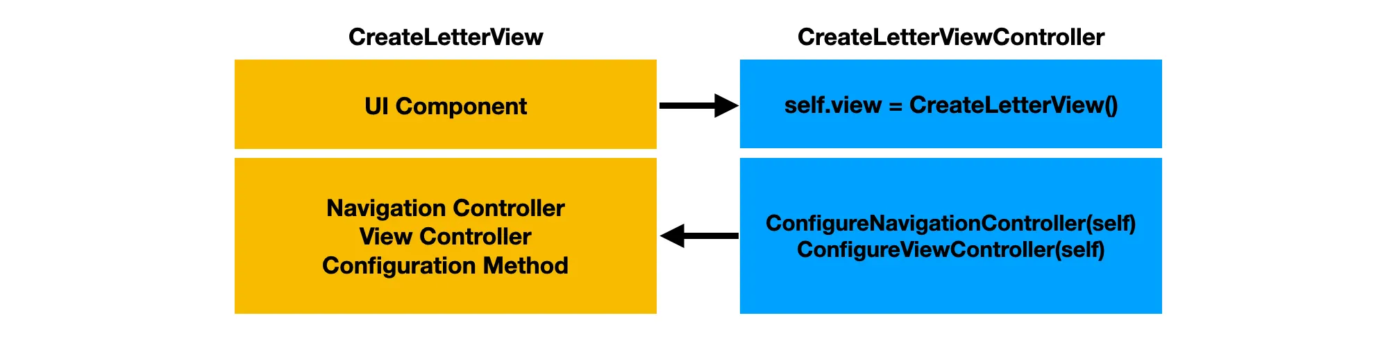 이러한 이유로 NavigationController Configuration코드의 위치를 CreateLetterView 내부로 넣었습니다. NavigationController는 UIViewController를 통해서 받는 방식으로 잡았습니다.