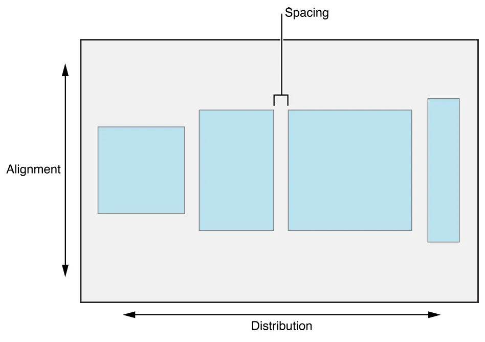 StackView axis에 따라서 배열된 View의 레이아웃을 결정하는 것은 distribution 속성입니다.