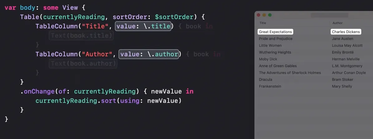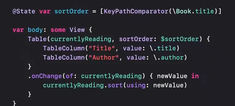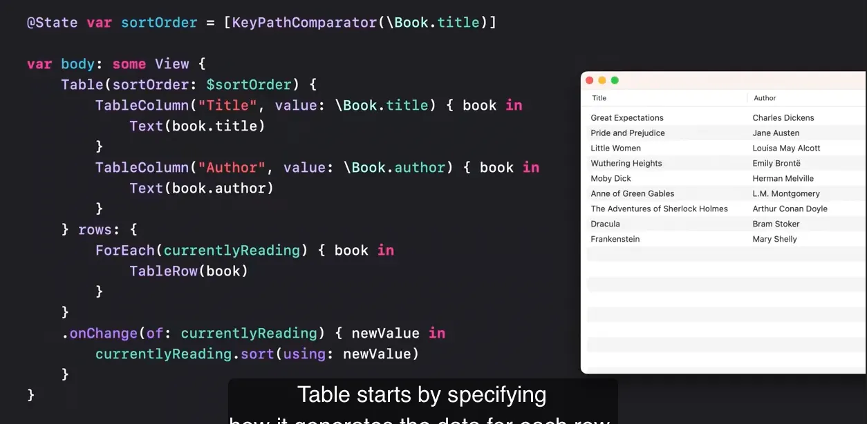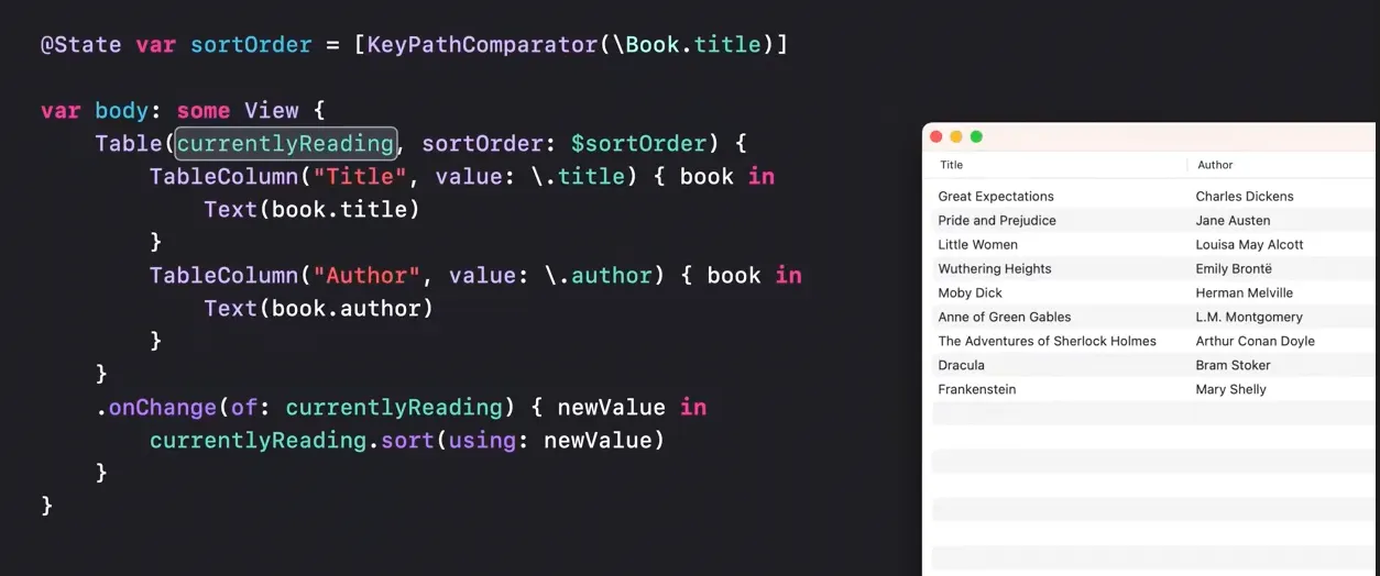 컬렉션을 표에 직접 통과시켜 ForEach 동작은 배경에서 수행되도록 하여 Call site를 단순화했습니다. 하지만 더 단순화할 수 있어요.