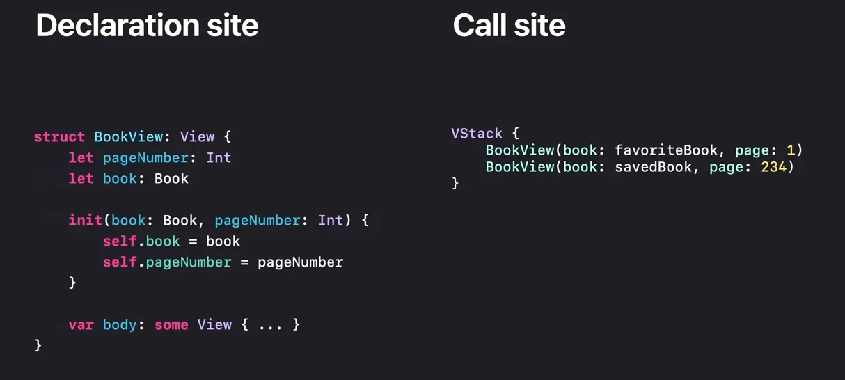 모든 동작은 수동으로 지정할 수 있지만 SwiftUI의 Intelligent default 덕분에 common use case와 관련 없는 내용은 call site에 나타나지 않아요.