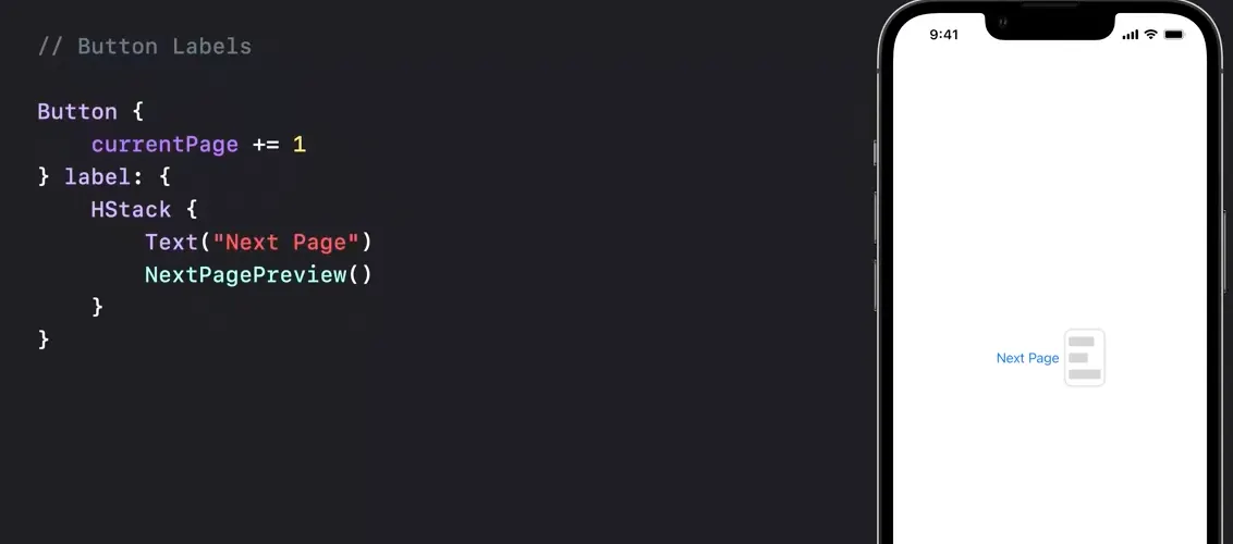 하지만 버튼을 커스텀화하고 싶다면 SwiftUI의 다른 override 메소드를 사용해서 레이블 형태의 임의의 뷰로 나타낼 수 있어요. 그 때는 간단한 컨트롤에도 복잡한 기능을 넣을 수 있게 되죠.