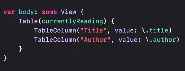대부분의 표에 나타내려는 값이 String이면 Text를 이용하여 열에 표시합니다. 케이스에 맞게 Call site를 최적화했죠.