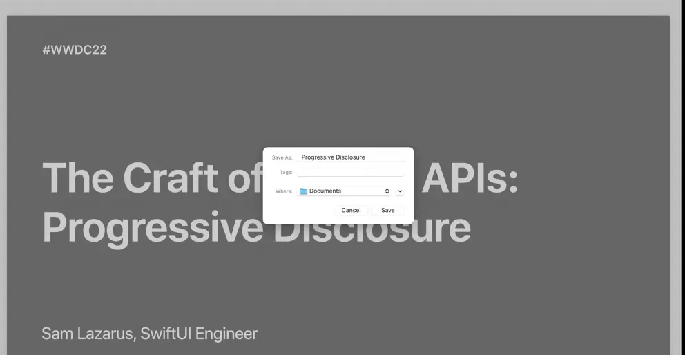 SwiftUI팀은 SwiftUI를 설계할 때 명확하게 정의된 원칙을 바탕으로 결정을 내리려고 노력했는데, 그 원칙 중 하나인 “Progressive Disclosure” 에 대해서 다루도록 하겠습니다.