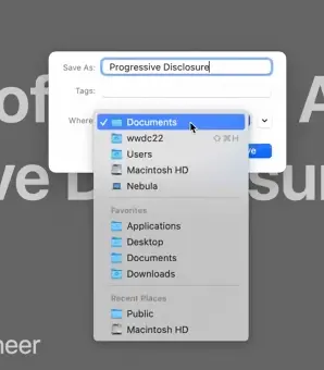 Progressive Disclosure는 API 설계에서만 사용하는 용어가 아니라고 해요. 일반적인 macOS UI에서도 볼 수 있는 개념입니다.