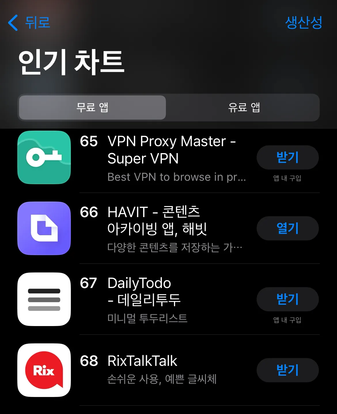 살면서 제가 만든 프로젝트가 앱 스토어 생산성 순위 66위에 등극하는 좋은 일도 있었습니다. 후후.