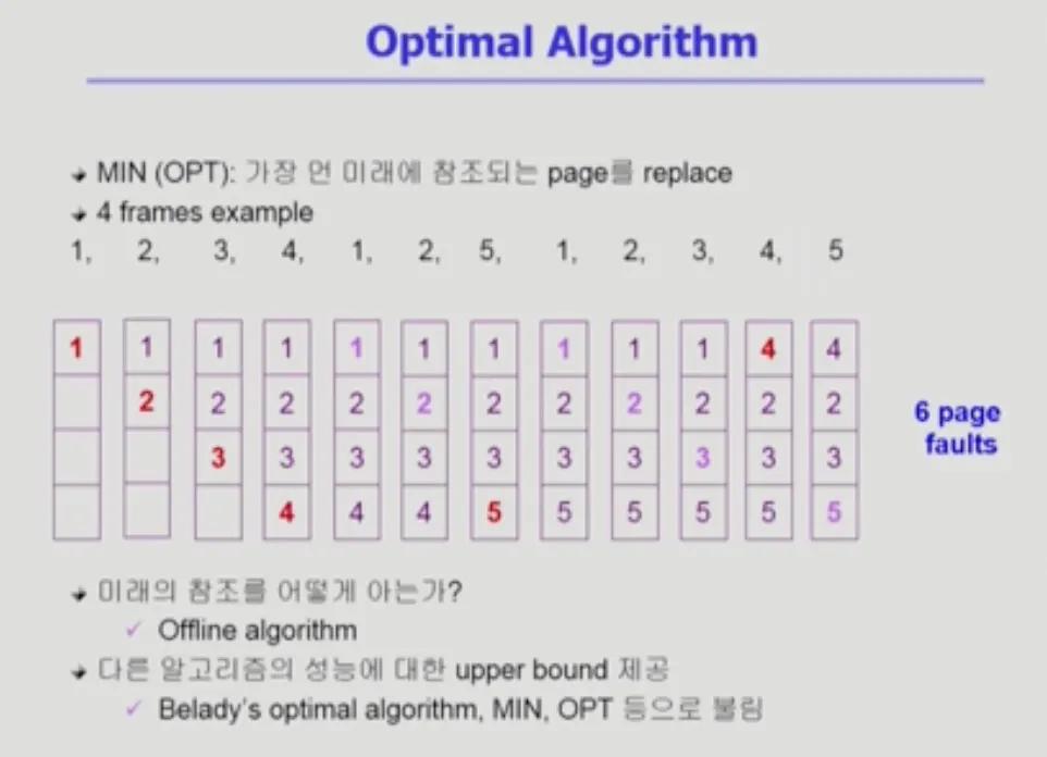 *실제 시스템에서는 사용될 수 없기때문에 Offline Optimal Algorithm 입니다.