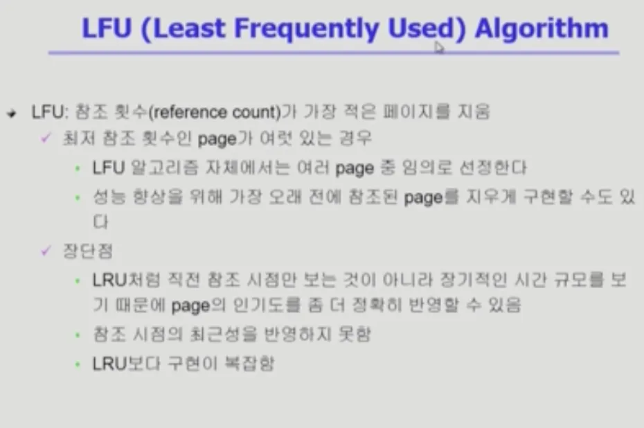 참조 횟수가 가장 적은 페이지가 여러개 있을 수 있는데 이런 경우에는 어떤 걸 쫓아내야 한다고 명시되어 있지 않다.