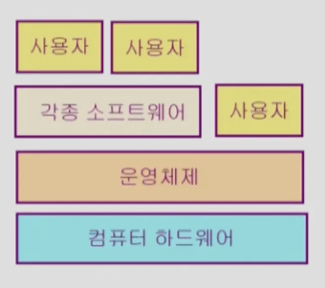 사용자 및 다른 모든 소프트웨어와 하드웨어를 연결하는 소프트웨어 계층