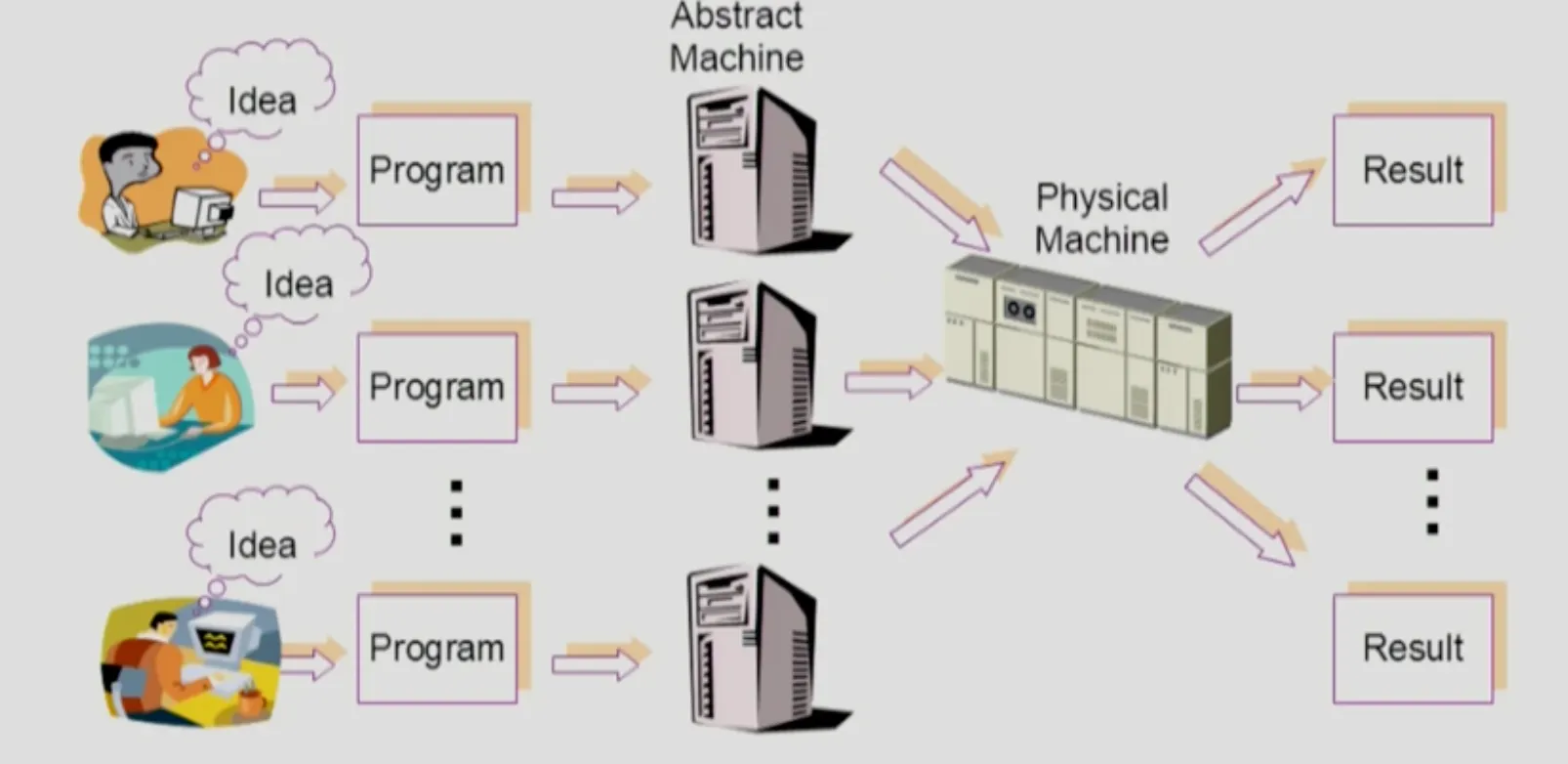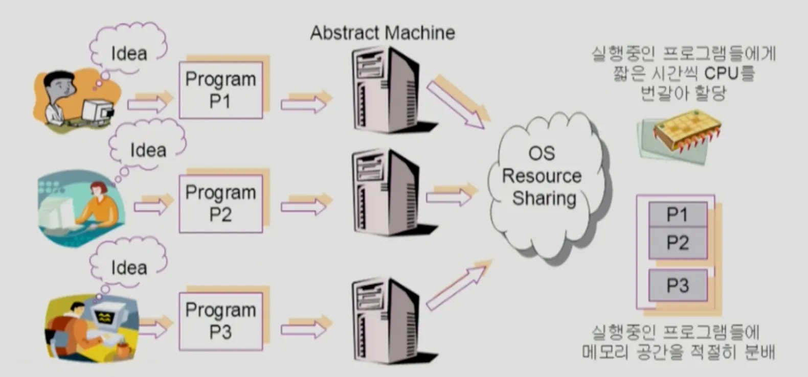 → 동시 사용자/프로그램들이 각각 독자적 컴퓨터에서 수행되는 것 같은 환상 제공