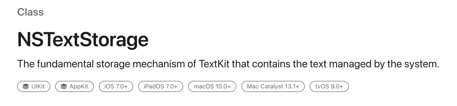 NSLayoutManager 집합을 관리하기 위한 동작을 추가하는 NSMutableAttributedString의 semi-concrete subclass 입니다.