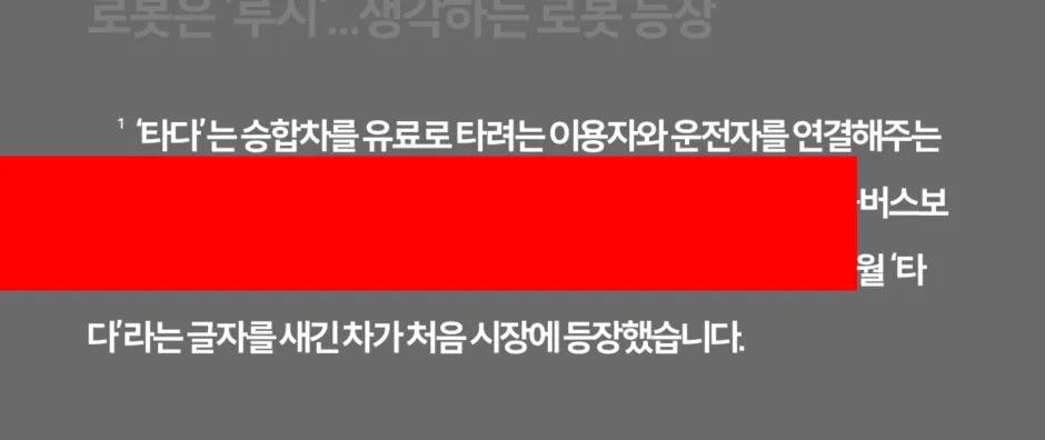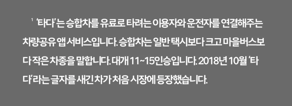 “차량공유 앱 서비스입니다.”와 “2018년 10월 ‘타” 라는 부분을 눌러도 "승합차는 일반 택시보다 크고 마을버스보다 작은 차종을 말합니다."를 누른 것으로 판단할 수 있게 됨