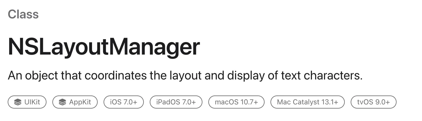 텍스트 뷰 객체 조정, 문단 스타일 편집을 위한 NSRulerView 인스턴스 지원하는 텍스트 뷰에 서비스 제공(macOS), 글리프에 속하지 않는 텍스트 속성(밑줄, 가로줄)의 레이아웃 레이아웃 및 표시를 처리합니다.