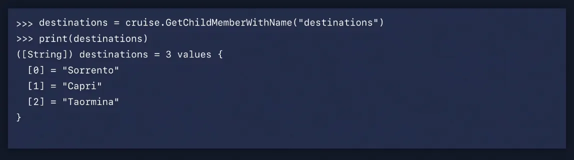 cruise에 있는 destination 멤버 이름들은 GetChildMember를 호출하여 액세스할 수 있습니다.