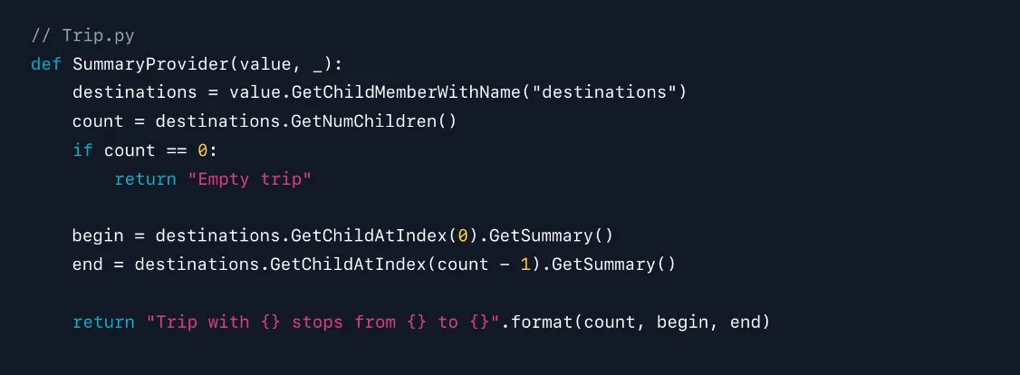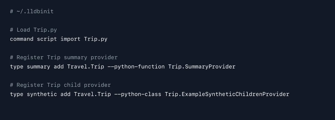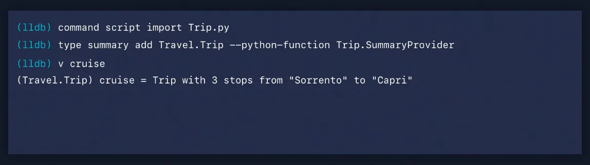 *formatter는 디버거 console에서 직접 정의하거나 파일을 사용하여 LLDB에 로드할 수 있습니다.