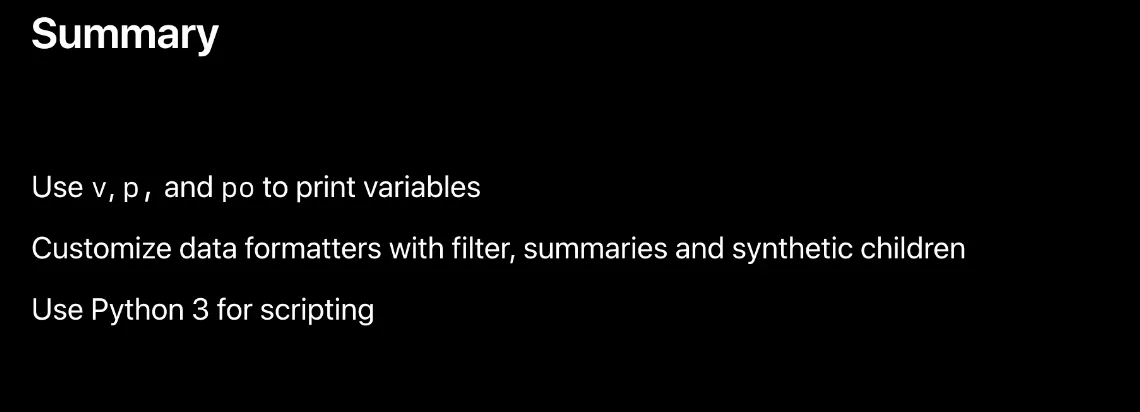 LLDB는 이 작업을 수행할 수 있는 여러 가지 방법을 제공합니다.