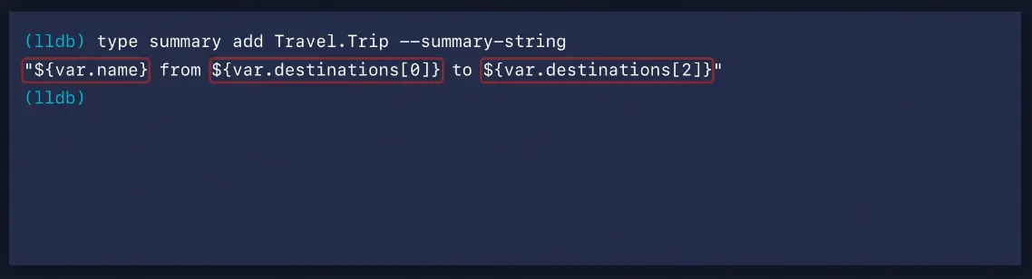 모든 type은 고유의 표현을 가질 수 있고 해당 표현을 사용자 정의할 수 있도록 LLDB는 아래 3가지 항목을 제공합니다.