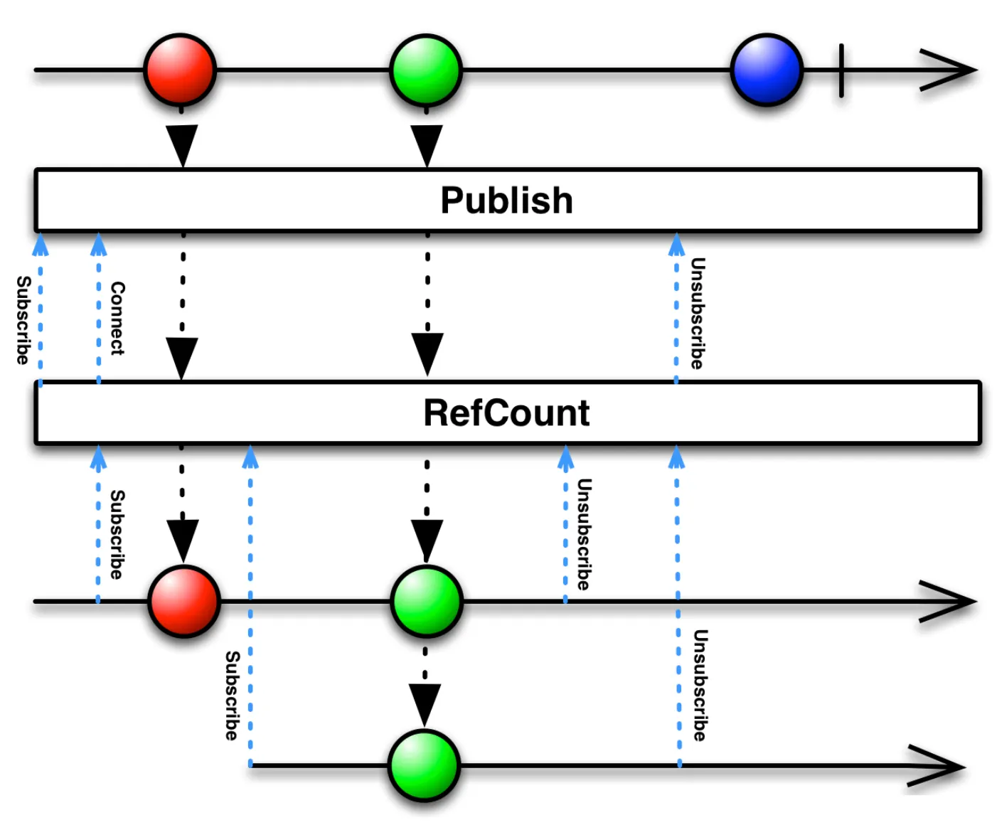 ConnectableObservable์ด๊ธฐ ๋๋ฌธ์ connect ๋ฉ์๋๋ฅผ ํตํด์ ๋ถ๋ฆฌ๊ธฐ ์ ๊น์ง๋ ๊ตฌ๋