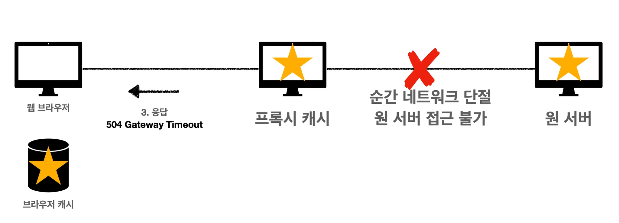 프록시 캐시 서버는 무언가 장애가 난 걸 보여주기 보다는 옛 데이터라도 보여주자라고 설정되어 있을 경우, 옛 데이터를 웹 브라우저로 보냅니다.(오류 혹은 오래된 데이터)