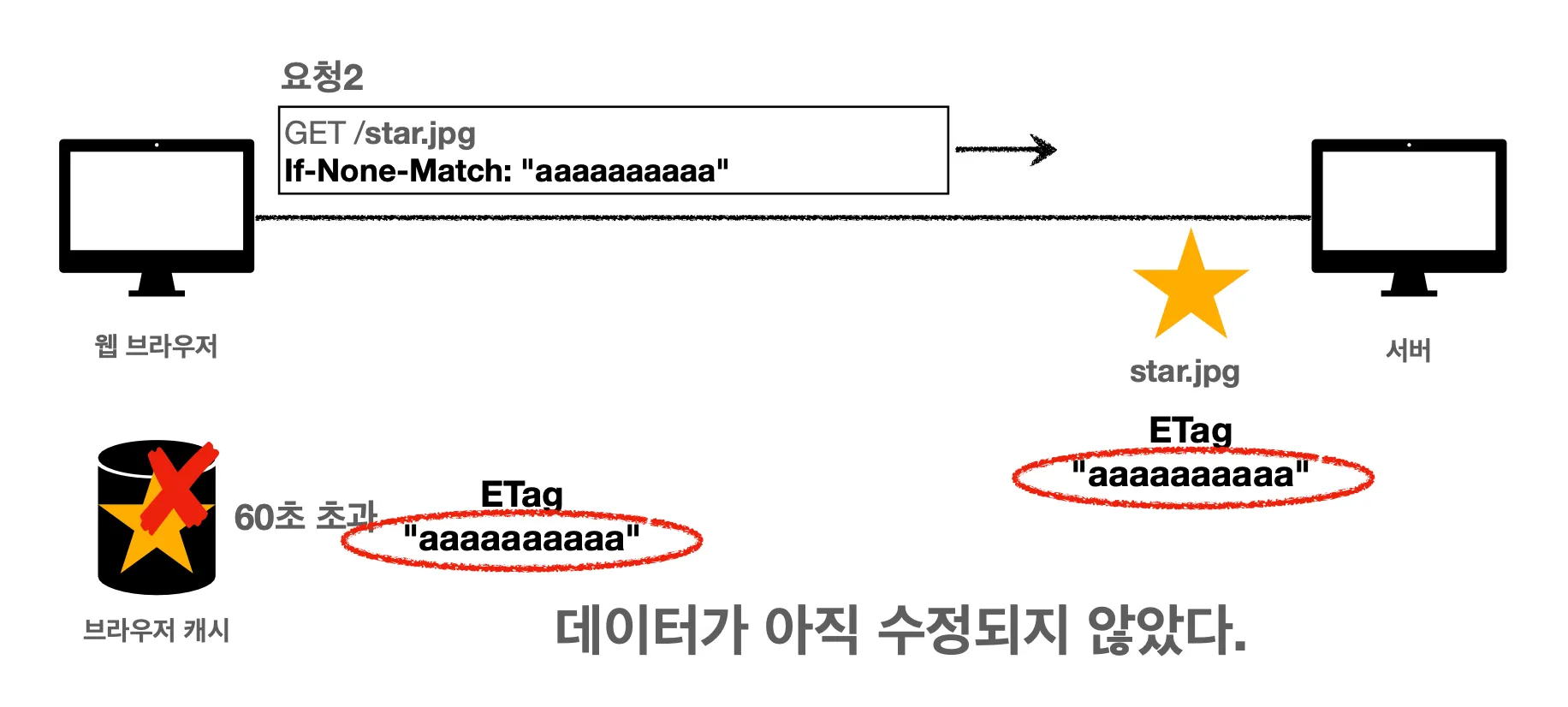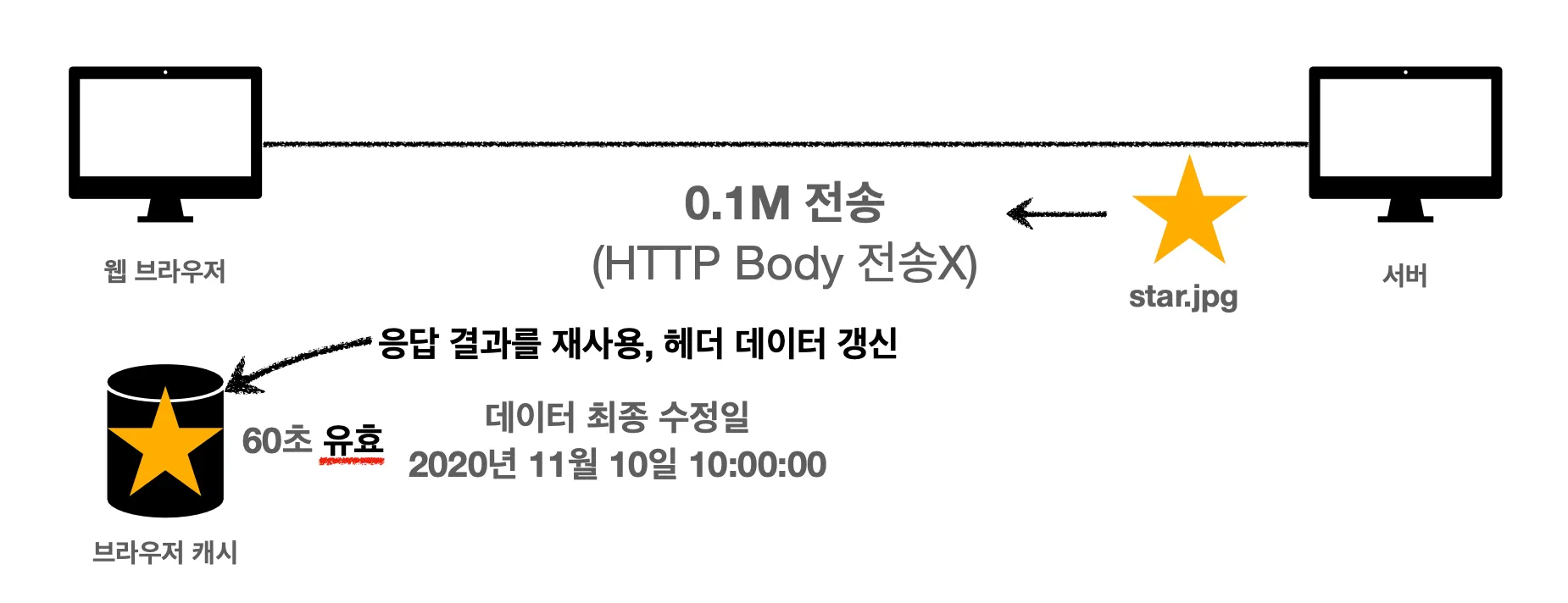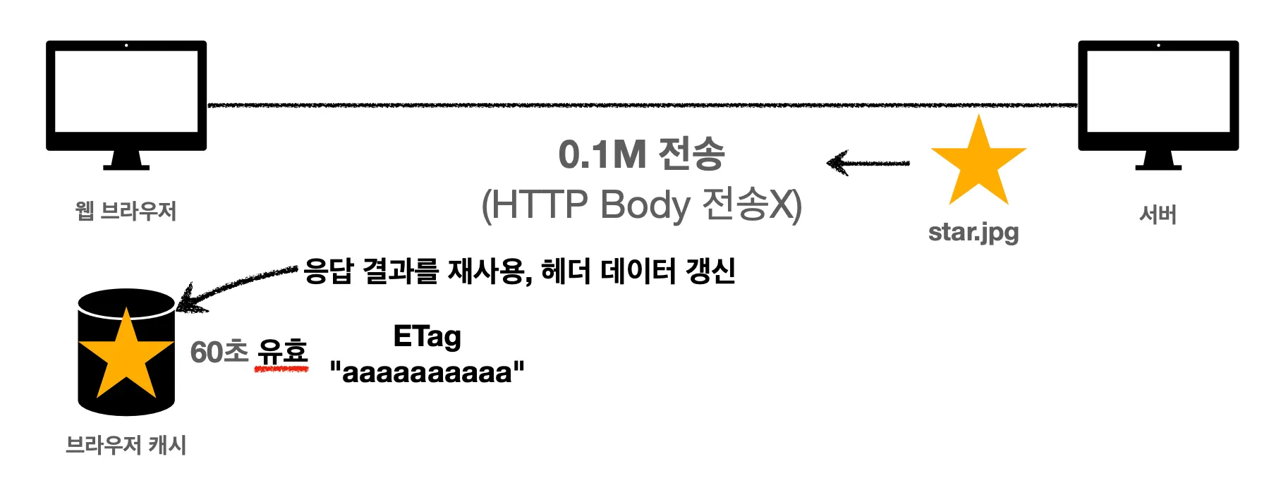 근데, 방금 상황을 잘 생각해보면 star.jpg 이미지가 전혀 변하지 않았다는 걸 알 수 있습니다. 하지만 캐시를 갱신해야 하기 때문에 이미지 데이터 전체를 다시 다운로드 받았습니다.