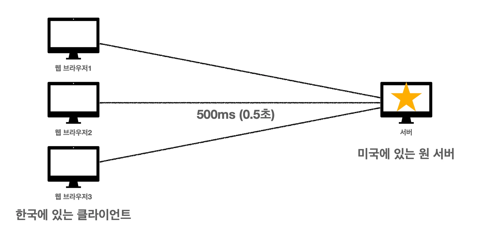 그러면 한국에 있는 클라이언트들은 모두 500ms를 기다리게 됩니다. 이미지 하나를 다운받기 위해서 0.5초를 기다리는 거죠.