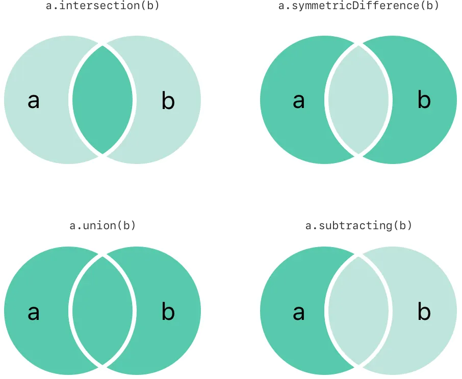 Set은 Set Operation을 가지고 다른 Set과 새로운 Set을 생성할 수 있습니다.