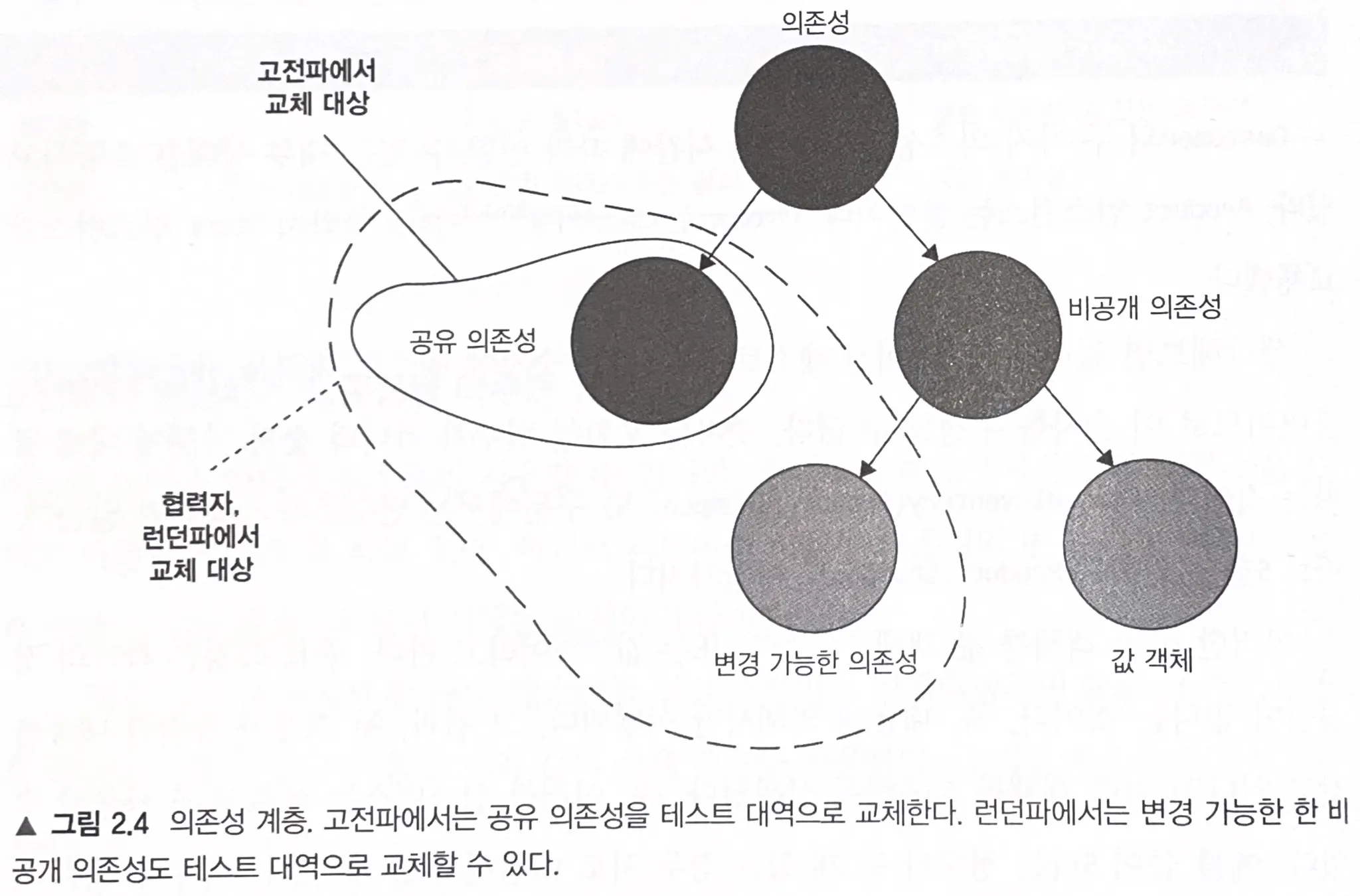 런던파는 테스트를 진행할 때, 테스트 대역으로 의존성을 대체합니다.