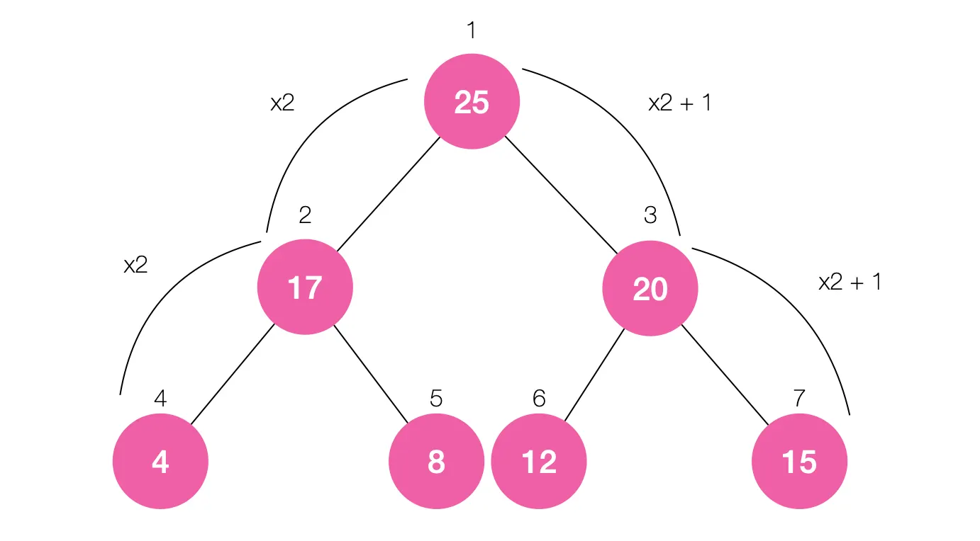 ⓼ while문 내부에서 모든 작업이 끝나고 나면 child의 현재 인덱스는 원래 가지고 있던 인덱스던지, 자신의 자식 노드의 인덱스를 가지고 있을 겁니다. 부모 노드의 값을 해당 인덱스의 /2한 부분에 넣습니다.