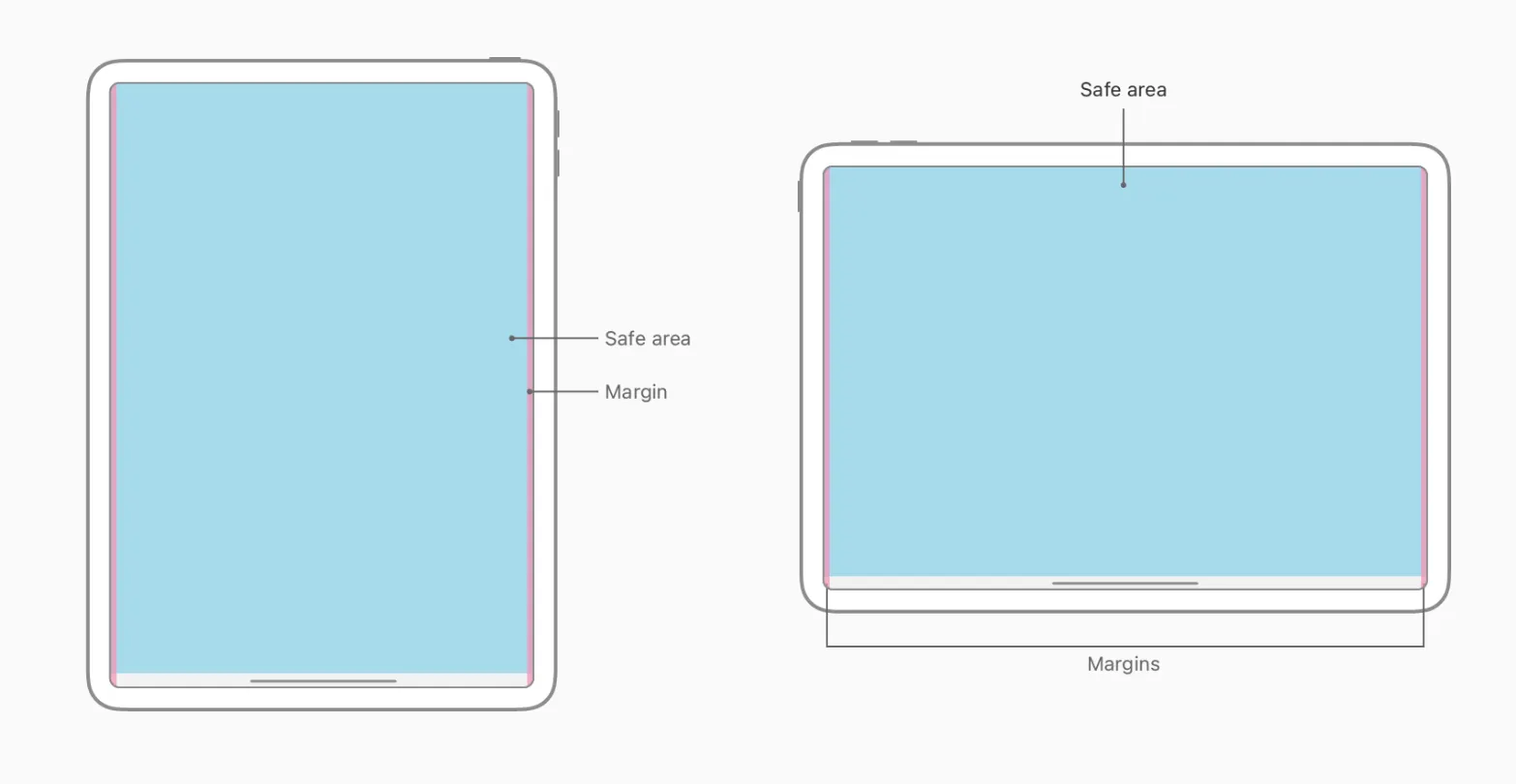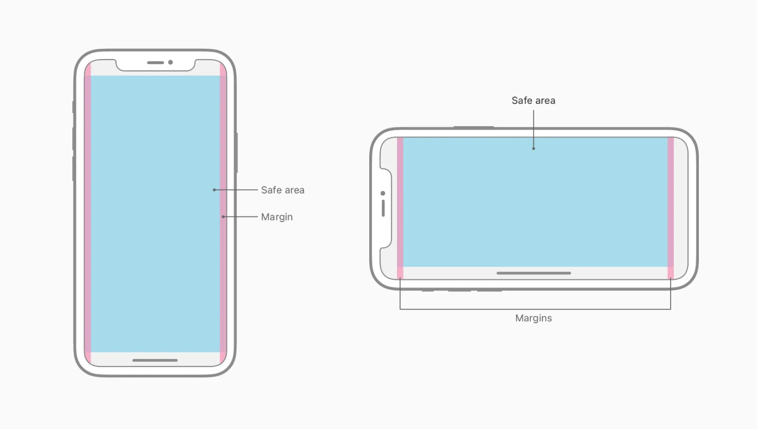 안전 영역(Safe area)은 Navigation bar, tab bar, toolbar, 또는 뷰 컨트롤러가 제공할 수 있는 기타 뷰에서 다루지 않는 뷰 내 영역을 정의합니다.