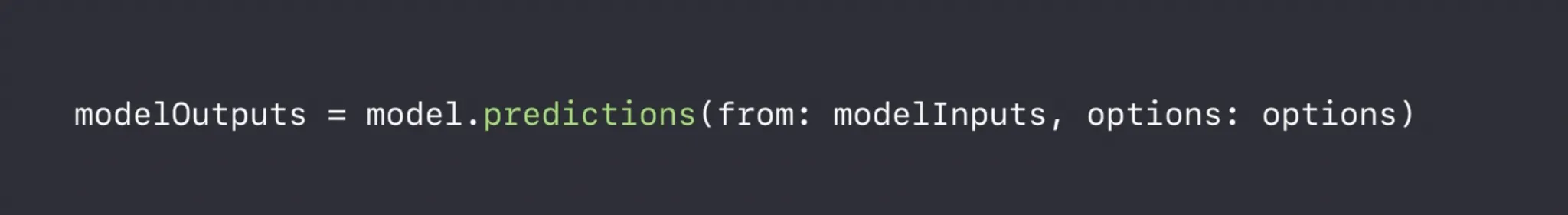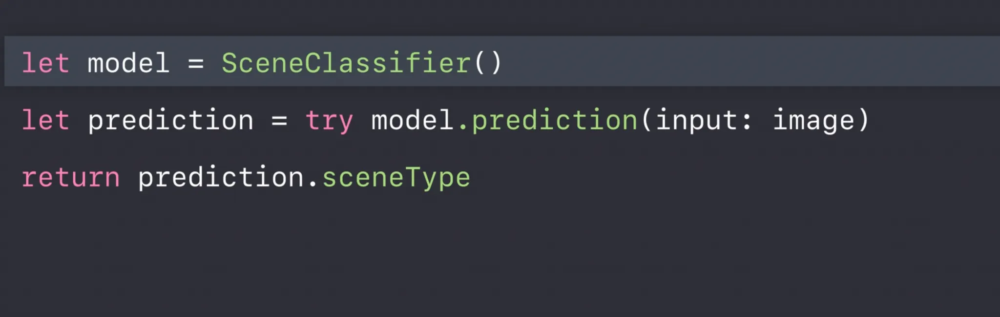 Xcode에서 모델과 상호 작용하는 건, 단지 코드 몇 줄, 모델을 로드하는 것, 예측하는 것, 때로는 관심 있는 특정 출력을 끌어내는 것 입니다.