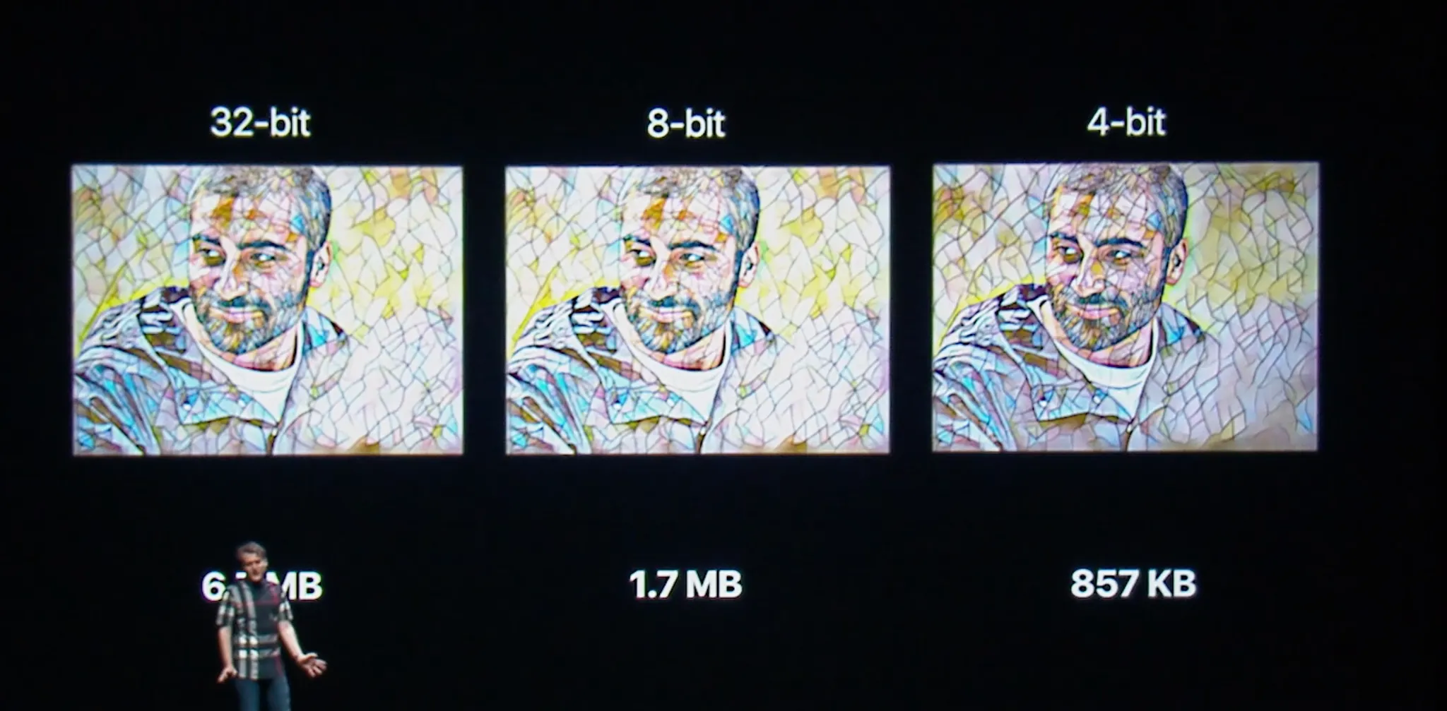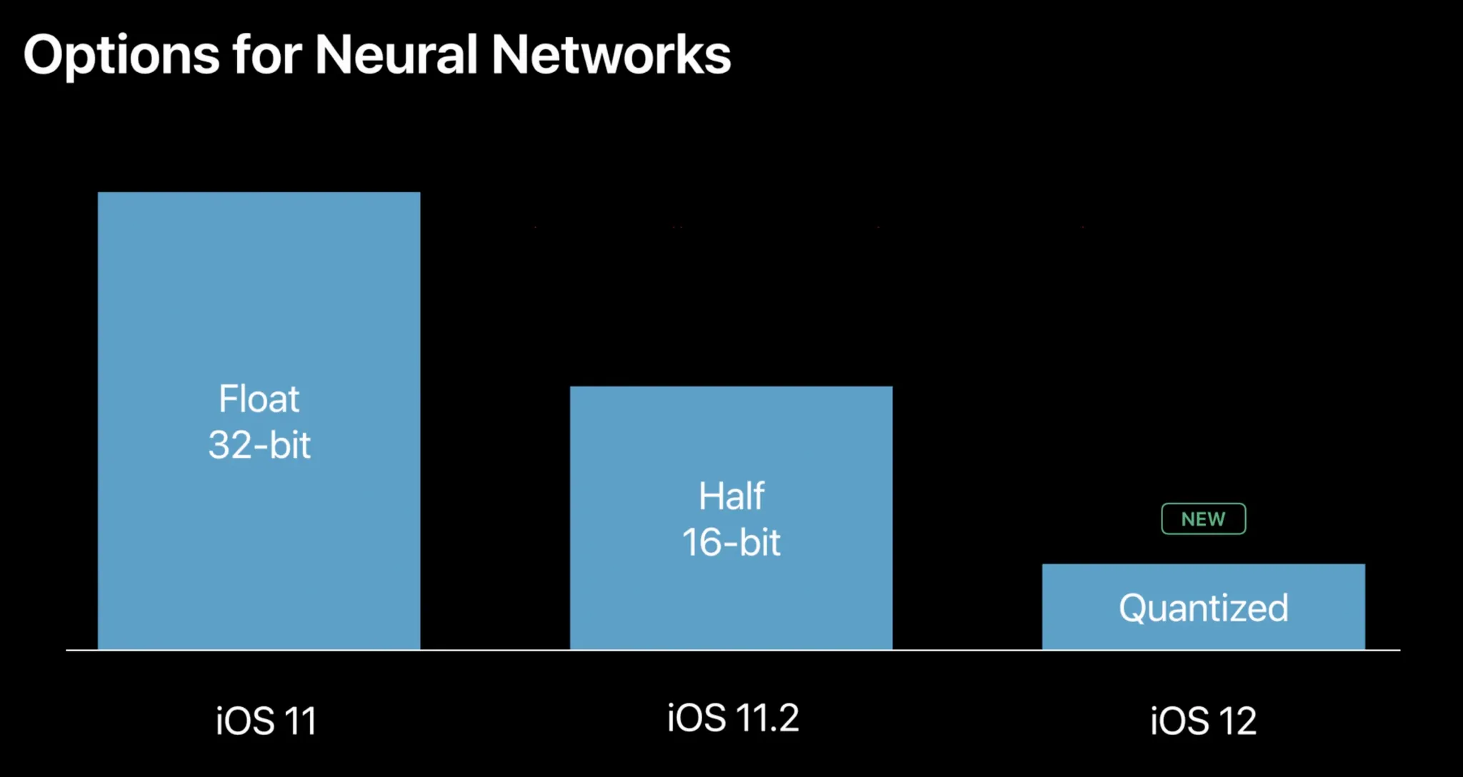 Core ML 형식의 신경망이 있는 경우 Core ML 도구를 사용하여 이를 양자화 가능합니다. Core ML 2는 자동으로 양자화되며 양자화된 모델을 교육할 수도 있어요!