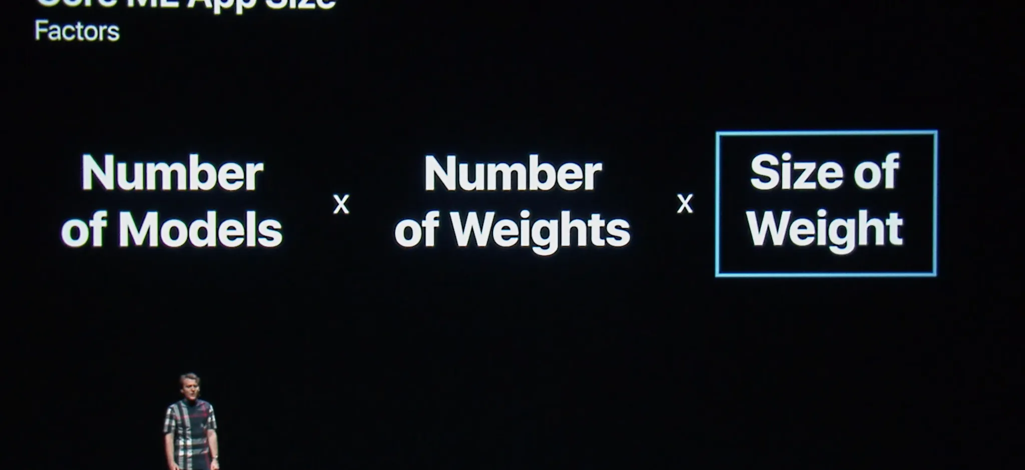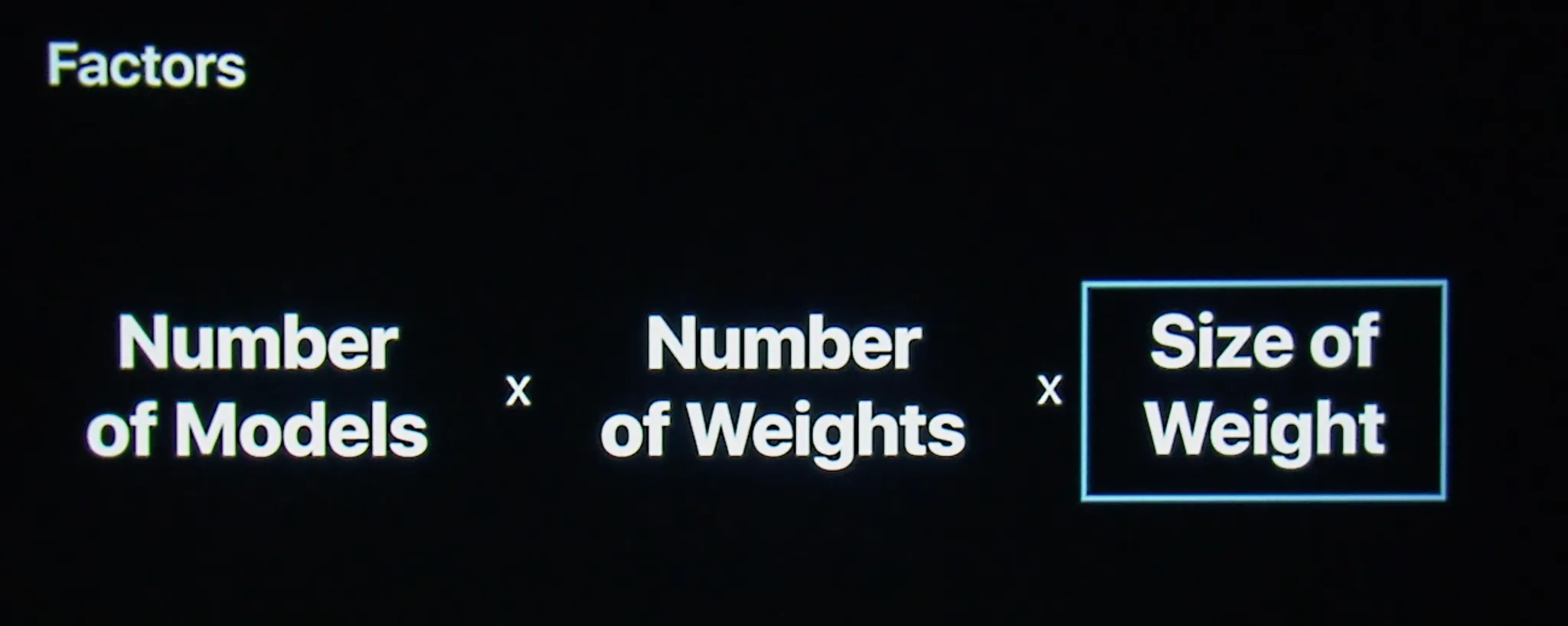 Core ML은 항상 머신러닝 문제에 적합한 크기의 모델을 선택하는 데 도움을 줍니다. Core ML은 이 세 가지 요소를 사용하여 앱의 크기를 해결하는 데 도움을 줄 수 있습니다.