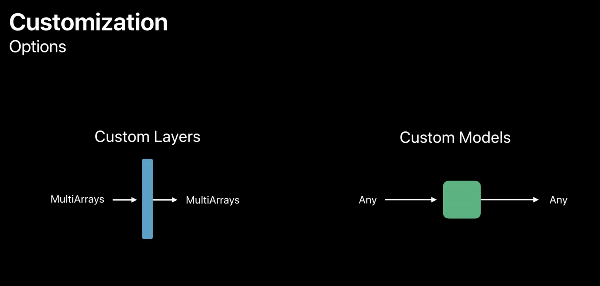 사용자 지정 계층은 신경망 모델에만 작동하며 MLMultiArray인 입력과 출력만 받습니다. 이것은 신경망과 상호작용하는 자연스러운 방법입니다. 그러나 머신 러닝 분야는 이 분야에서만 발전하는 것에 국한되지 않는다.