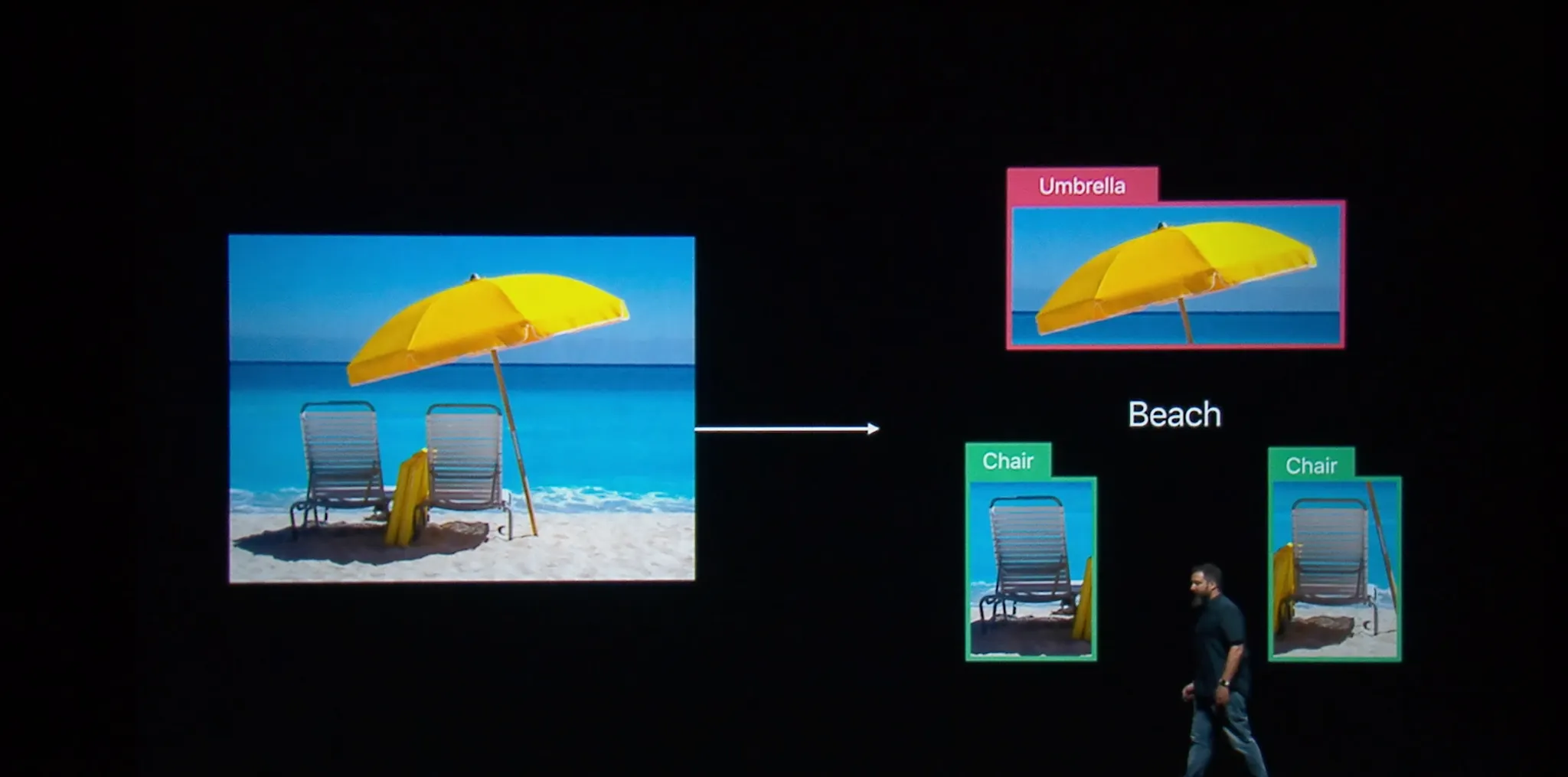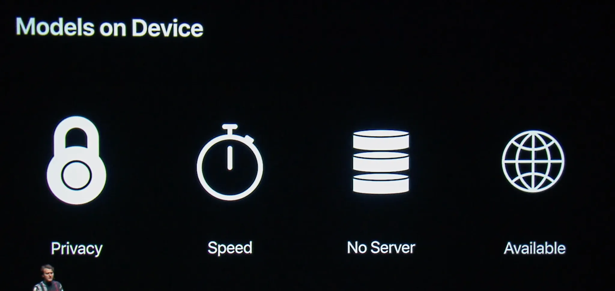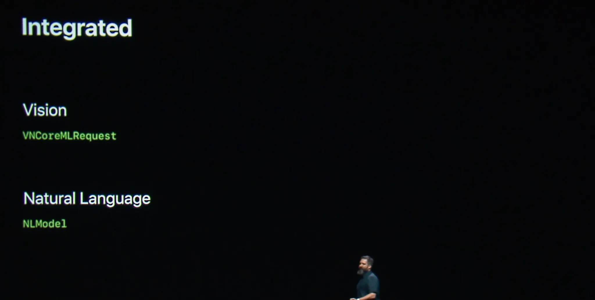 Core ML은 일부 상위 레벨 API와 통합되고 Core ML 모델을 제공하면 동작을 사용자 지정할 수 있기 때문에 경우에 따라서는 다시 코드를 쓸 필요가 없다고 합니다. Vision에서는 VNCoreMLRequest 개체를 통해 작업을 수행합니다. 그리고 새로운 자연어 프레임워크에서는 CoreML 모델에서 ML 모델을 인스턴스화할 수 있습니다.