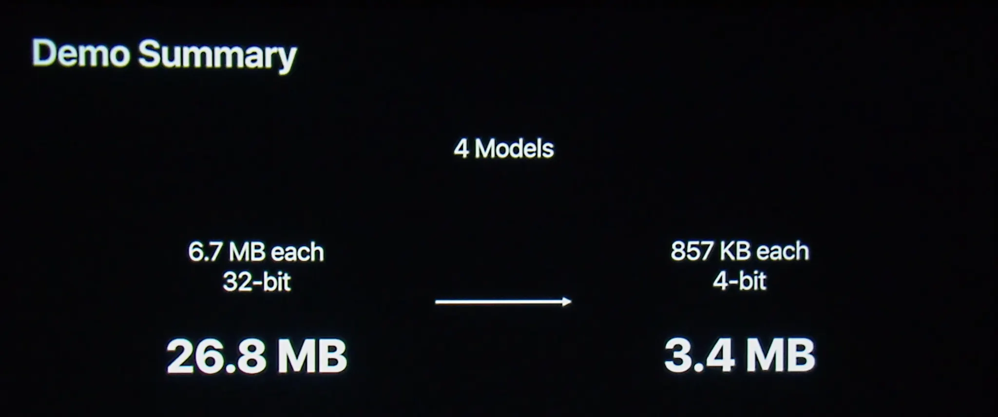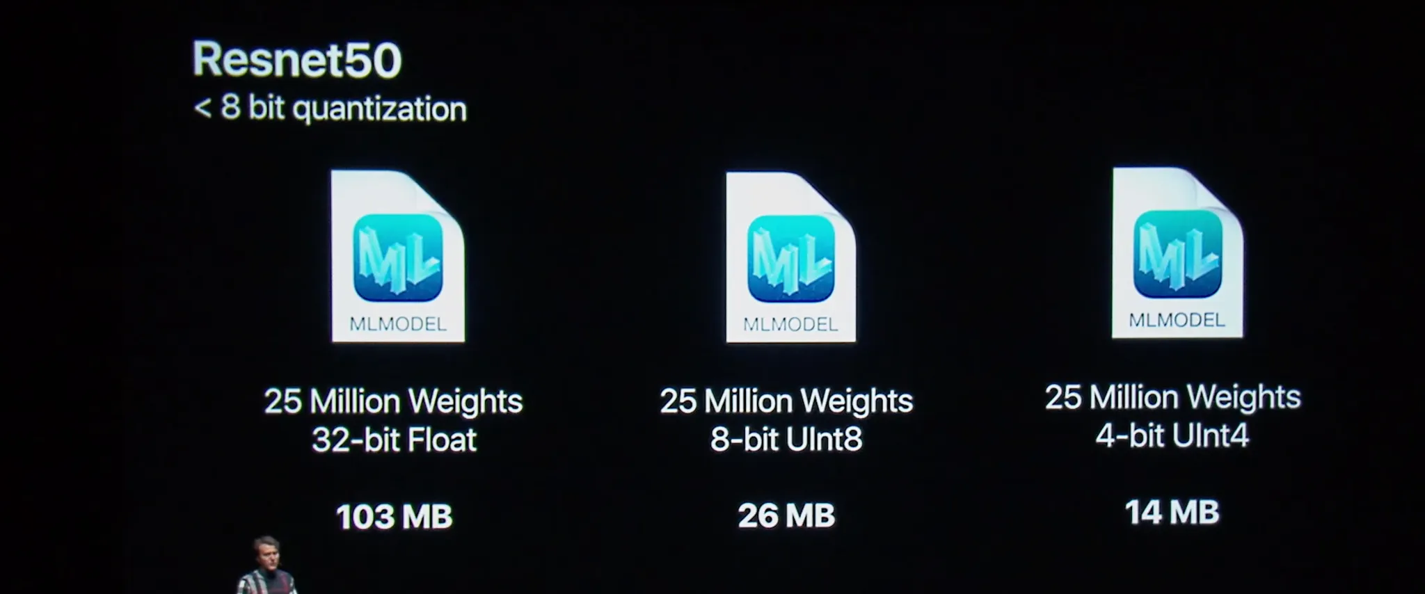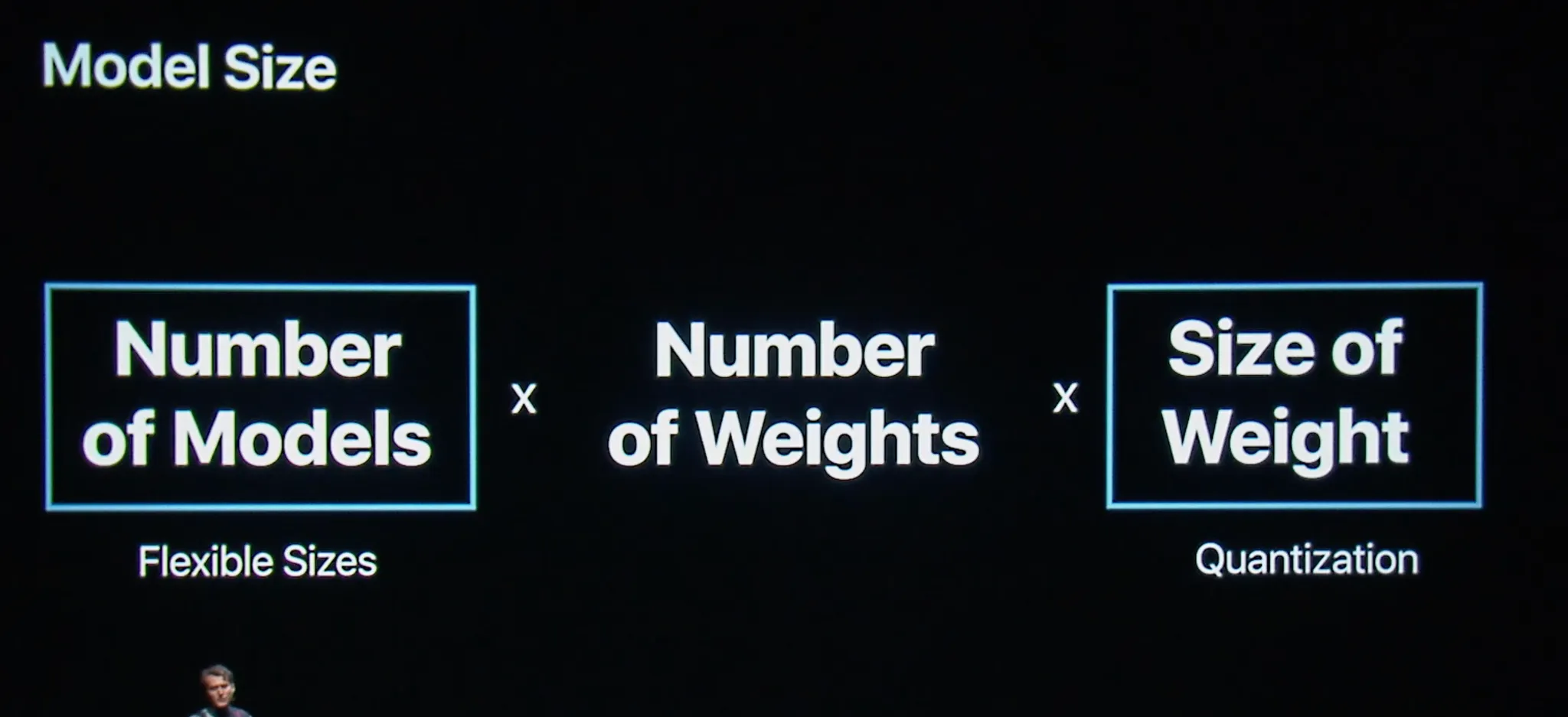 따라서 우리는 여전히 코어 ML이 유연한 크기로 사용하는 모델의 수를 가지고 있으며, 가중치의 크기는 양자화에 의해 줄일 수 있다.