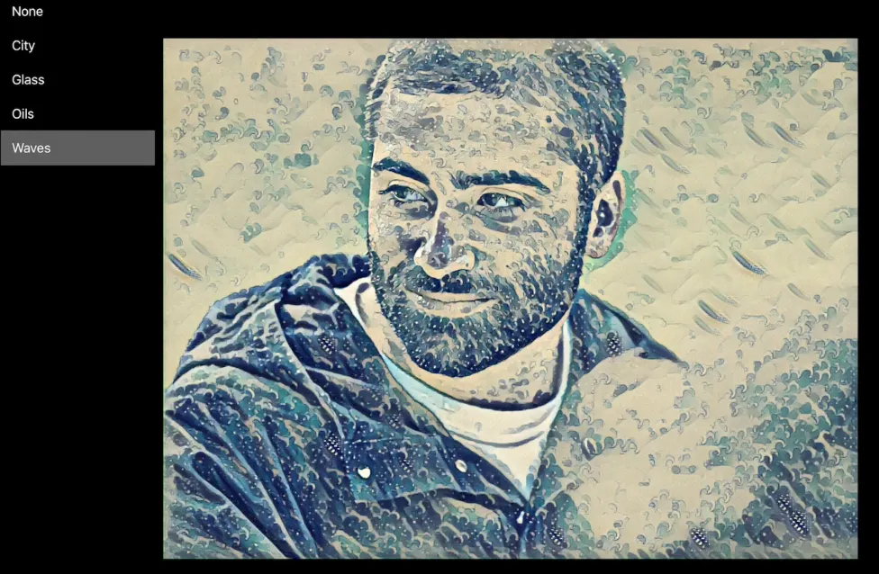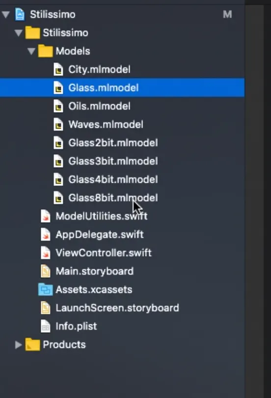 네 가지 Core ML 모델인 시티, 글래스, 오일, 웨이브스를 Xcode로 번들로 가지고 있습니다.