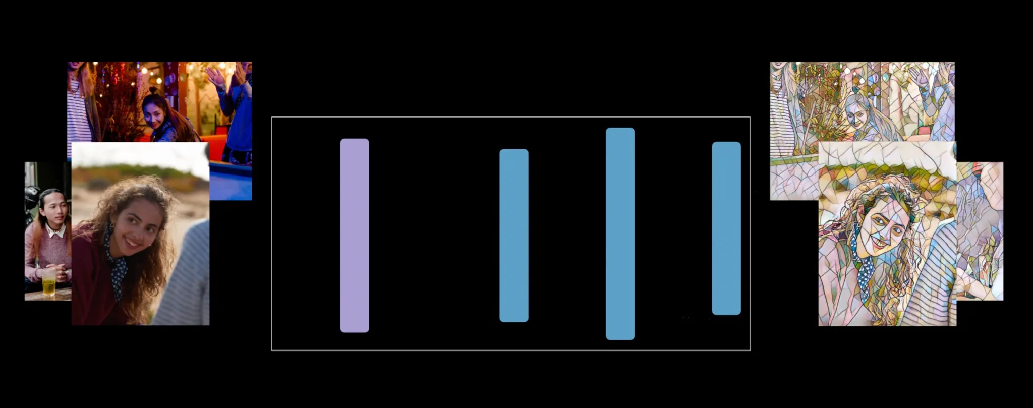 스타일 전송 예시에서 신경망은 그림이나 다른 이미지를 보고 학습한 스타일을 사용하여 사용자 이미지를 렌더링하도록 훈련했습니다.